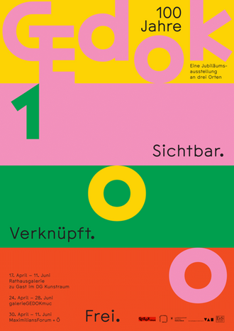 100 Jahre GEDOK stehen für ein Jahrhundert künstlerischer Arbeit von Frauen sowie für weibliche Kreativität und kulturelles Engagement. Anlässlich ihres Jubiläums realisiert die Organisation das Kooperationsprojekt Sichtbar. Verknüpft. Frei., das an drei Münchner Ausstellungsorten präsentiert wird.