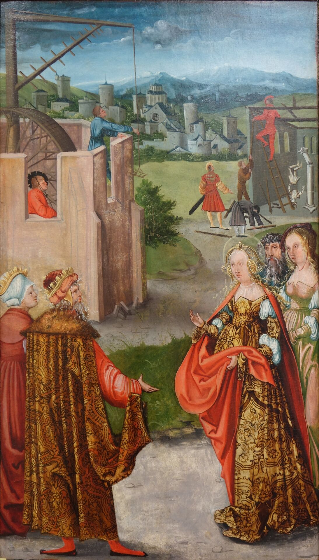 Da die Burgkirche 1819 wegen Baufälligkeit abgerissen worden ist, wurde das Retabel ein Jahr zuvor auf den Oberchor der Lübecker Katharinenkirche verbracht – einem ersten provisorischen Museum in Lübeck. Seit 1840 wird das Maria-Magdalenen-Retabel im Sammlungsbestand des heutigen St. Annen-Museums unter den Inventarnummern 18 (Flügelretabel) und 19 (Predella) geführt. Kurz zuvor wurden die Flügel vermutlich vom Hauptwerk getrennt, zersägt und dem Kunstmarkt zugeführt. Seit 1941 befinden sich die beiden Tafeln des rechten Außenflügels im Besitz des Allen Memorial Art Museum in Oberlin, Ohio (USA). Dank der Unterstützung der Ernst von Siemens Kunststiftung konnten nun die zwei Tafeln des linken Flügels, die lange als verschollen galten, erworben und in ihren ursprünglichen Zusammenhang zurückgeführt werden. Die sehr wahrscheinlich von Erhard Altdorfer ausgeführten Malereien zeigen zwei Episoden der in acht Bildfeldern gemalten sog. Meerfahrtslegende der Maria Magdalena: ihre Ankunft in Marseille (Abb. 1) und die Bekehrung eines Fürstenpaars (Abb. 2). Es handelt sich um zentrale Motive einer apokryphen Erzählung (Abb. 3), die das Leben der Heiligen zwischen Himmelfahrt Christi und ihrer Zeit als Eremitin schildert. Kombiniert werden diese Malereien der ersten Wandlung mit Schnitzereien in der zweiten Wandlung (Abb. 4), die unterschiedliche biblische Begebenheiten der Maria Magdalena aus Bethanien, der Maria Magdalena aus Magdala und der Sünderin Maria Magdalena zu einer Legende miteinander verweben. Im Jahr 1227 siegte die Hansestadt Lübeck am 22. Juli, dem Patronatstag der Heiligen Maria Magdalena, in der Schlacht von Bornhöved und konnte sich dadurch von der dänischen Vorherrschaft befreien. Aus diesem Grund erfährt die Heilige seit jeher eine besondere Verehrung. Eben diese Szenerie ist auf einer der beiden Tafeln, die sich heute in Oberlin (Ohio) befinden und einst den rechten Außenflügel bildeten, zu sehen. Sie stellt ebenso wie das Holstentor im Hintergrund einer weiteren Szene den bedeutenden Bezug zur Stadt Lübeck her.