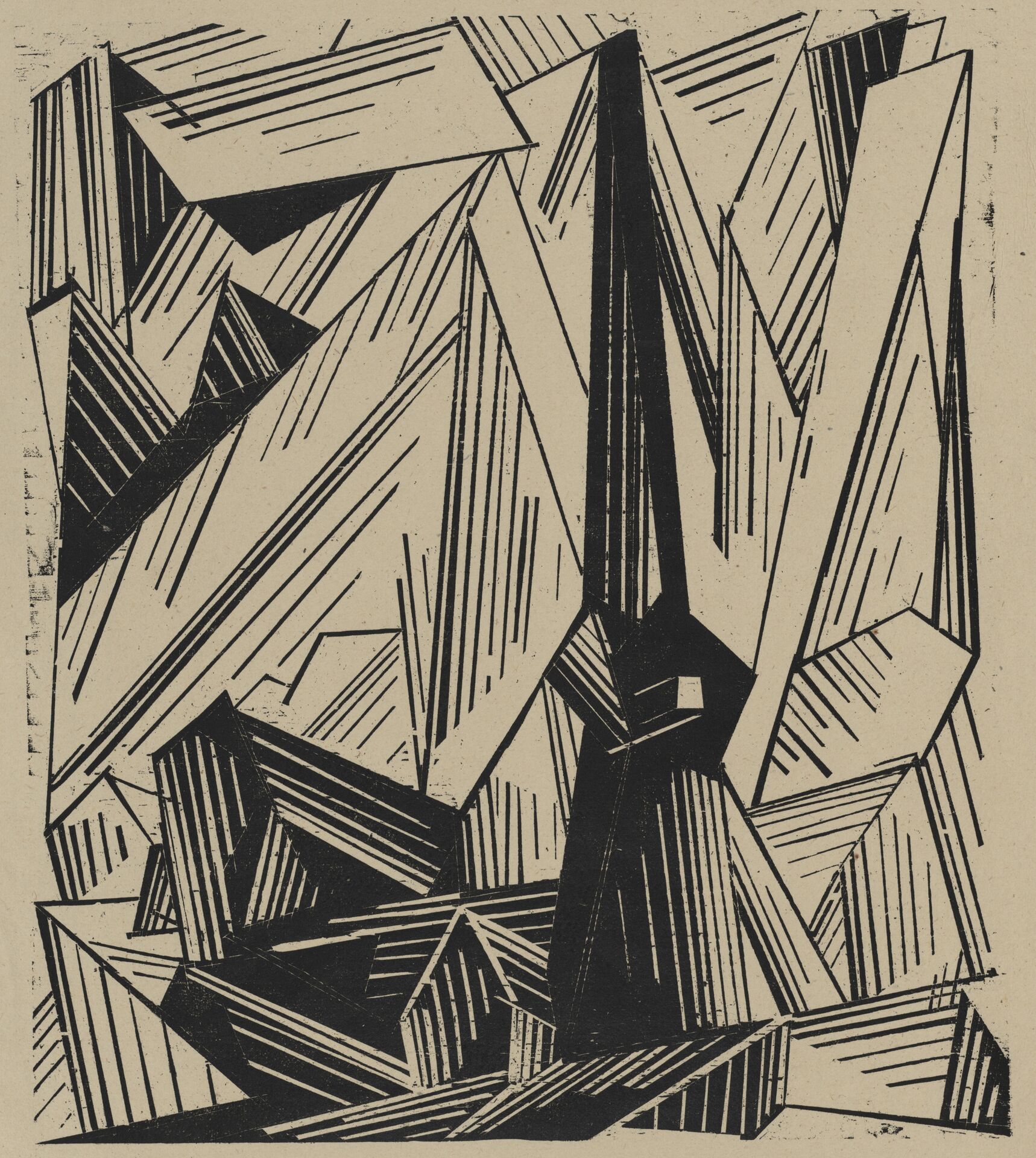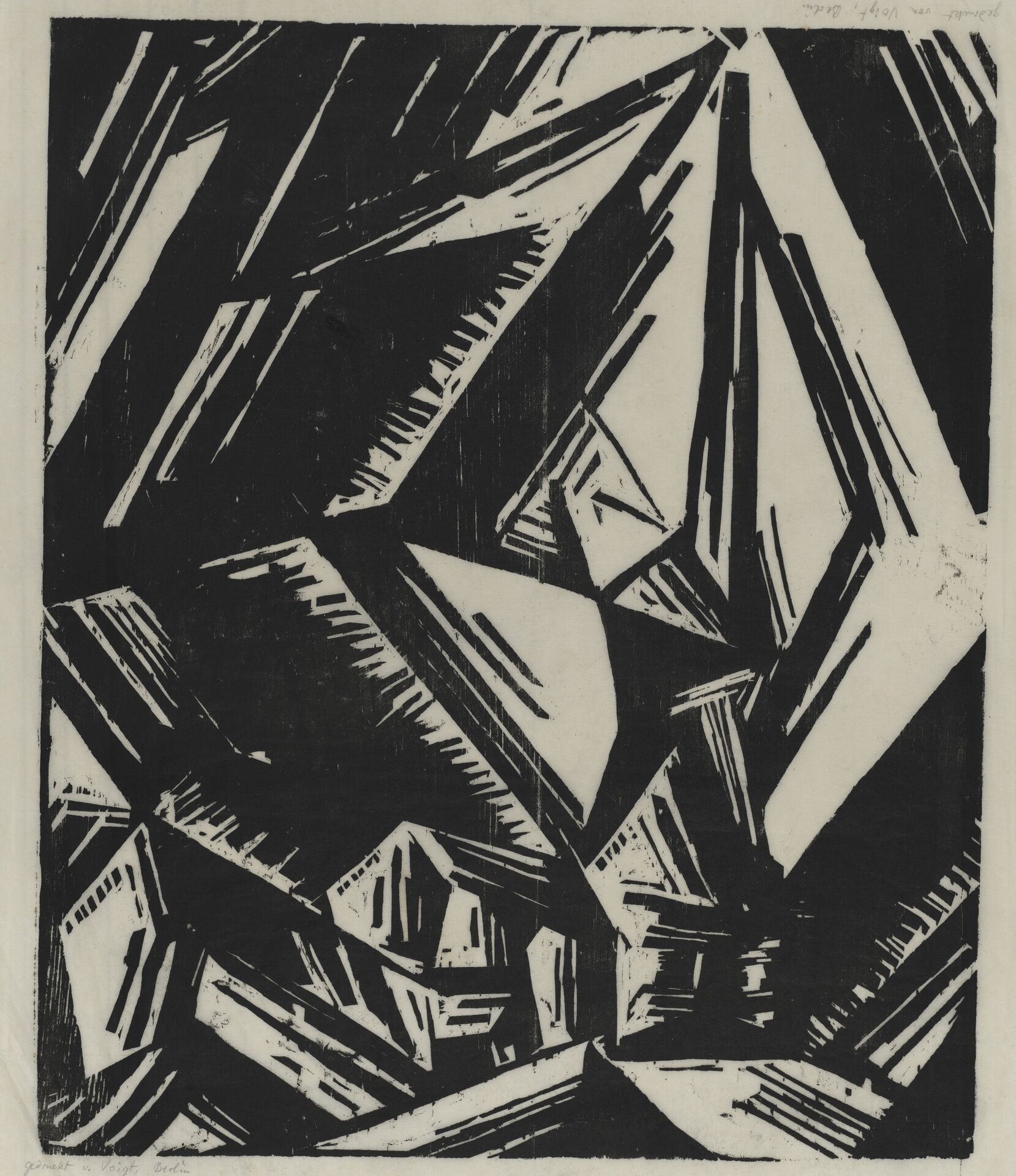 Abbildung 1: Lyonel Feininger, Gelmeroda, 1920, Holzschnitt / Bütten, Bildgröße: 490 x 428 mm, Blattmaß: 590 x 570 mm, Holzschnitt