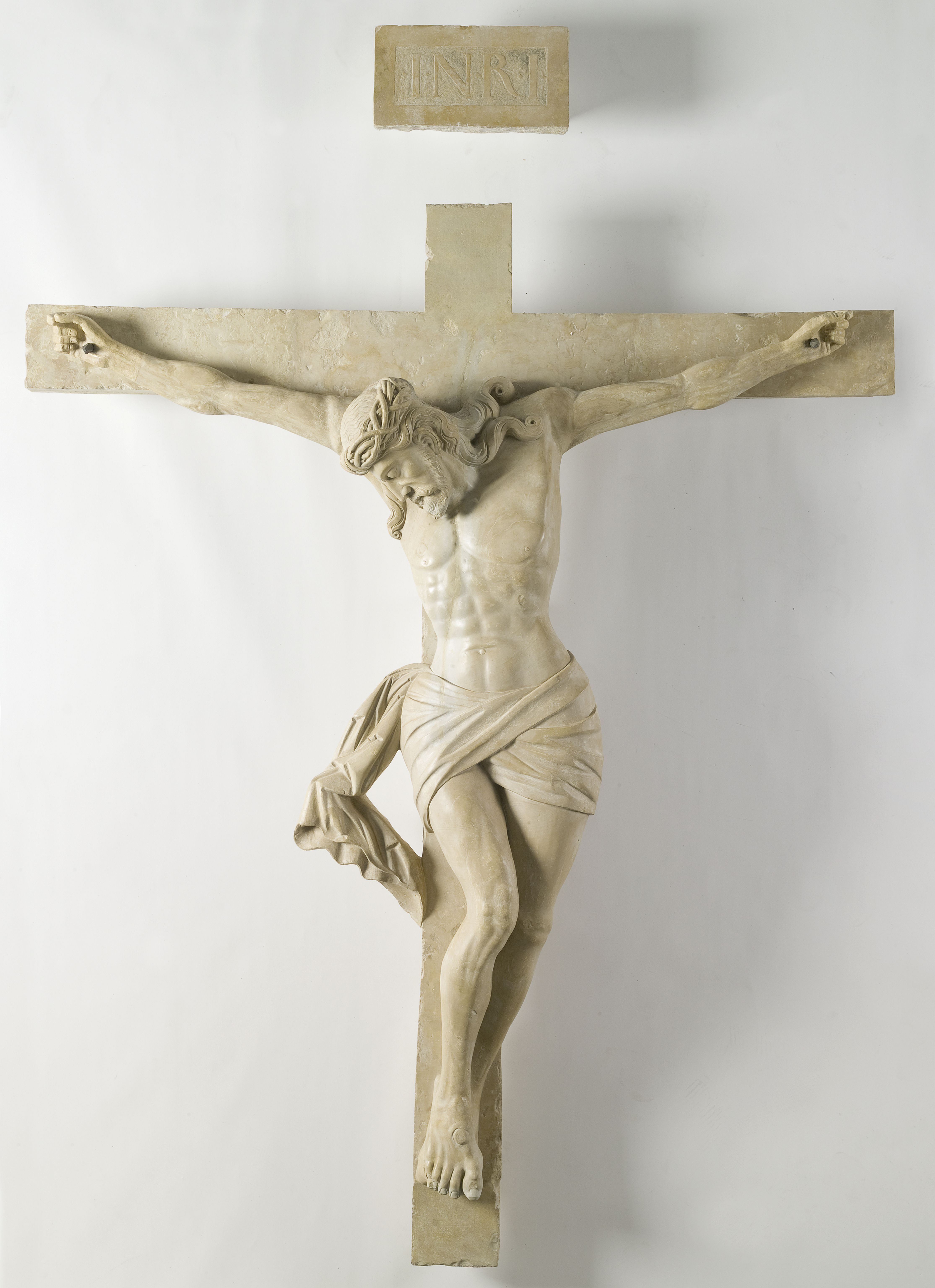 Der Kruzifixus, der Christus in Form des Dreinageltyps zeigt, gehört zu den wenigen monumentalen Arbeiten in Solnhofener Stein, die sich in Museumsbesitz befinden. Die restauratorische Bearbeitung des bislang in Einzelteile zerlegten Werkes betraf Substanzfestigung und Untersuchung der ursprünglichen Oberflächengestaltung. Dabei konnten mehrere Fassungen nachgewiesen und eine ursprüngliche Teilfassung wahrscheinlich gemacht werden. Hinsichtlich der Oberflächenerscheinung wird auf den Eindruck der barocken Zweitfassung hingearbeitet, da sich die ursprüngliche Qualität der Steinepidermis aufgrund der späteren Bewitterung nicht rekonstruieren lässt. Aus flankierenden kunsthistorischen Forschungen resultierte die Neuverortung des bisher nach Augsburg lokalisierten Bildwerks in den Eichstätter Kunstkreis. Weitere wichtige, die Einordnung und Bedeutung der Skulptur präzisierende Resultate sind mit Abschluss der Restaurierung zu erwarten.